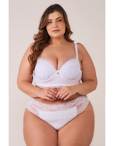 Conjunto plus size sem bojo e com aro de microfibra e renda com efeito redulip