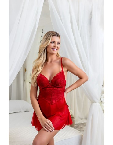 Camisola sem bojo e com aro de tule e renda com calcinha fio string