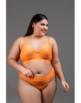 Conjunto luxo plus size de renda com bordado inglês e calcinha semifio de renda