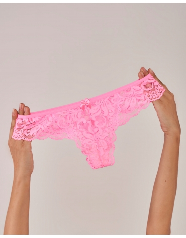 DESCRIÇÃO• Combo de calcinhas• Confeccionadas em renda nas cores rosa pantera, preto, branco, theos e lavanda • Ajustável na lateral• Traseira fio de rendaCUIDADOSLavagem a mão, não alvejar, não secar em tambor, secagem em varal por gotejamento a sombra, não passar ou utilizar vaporização, não limpar a seco, não limpar a úmido.